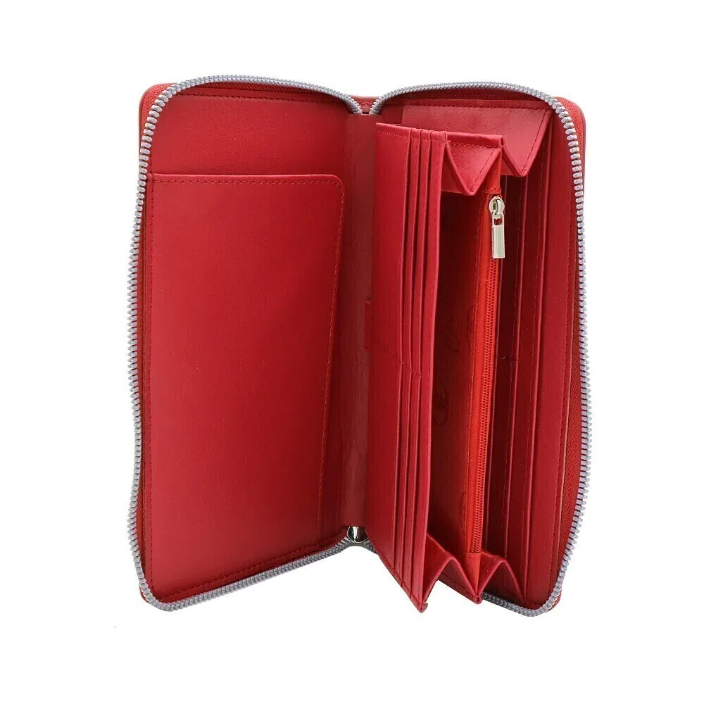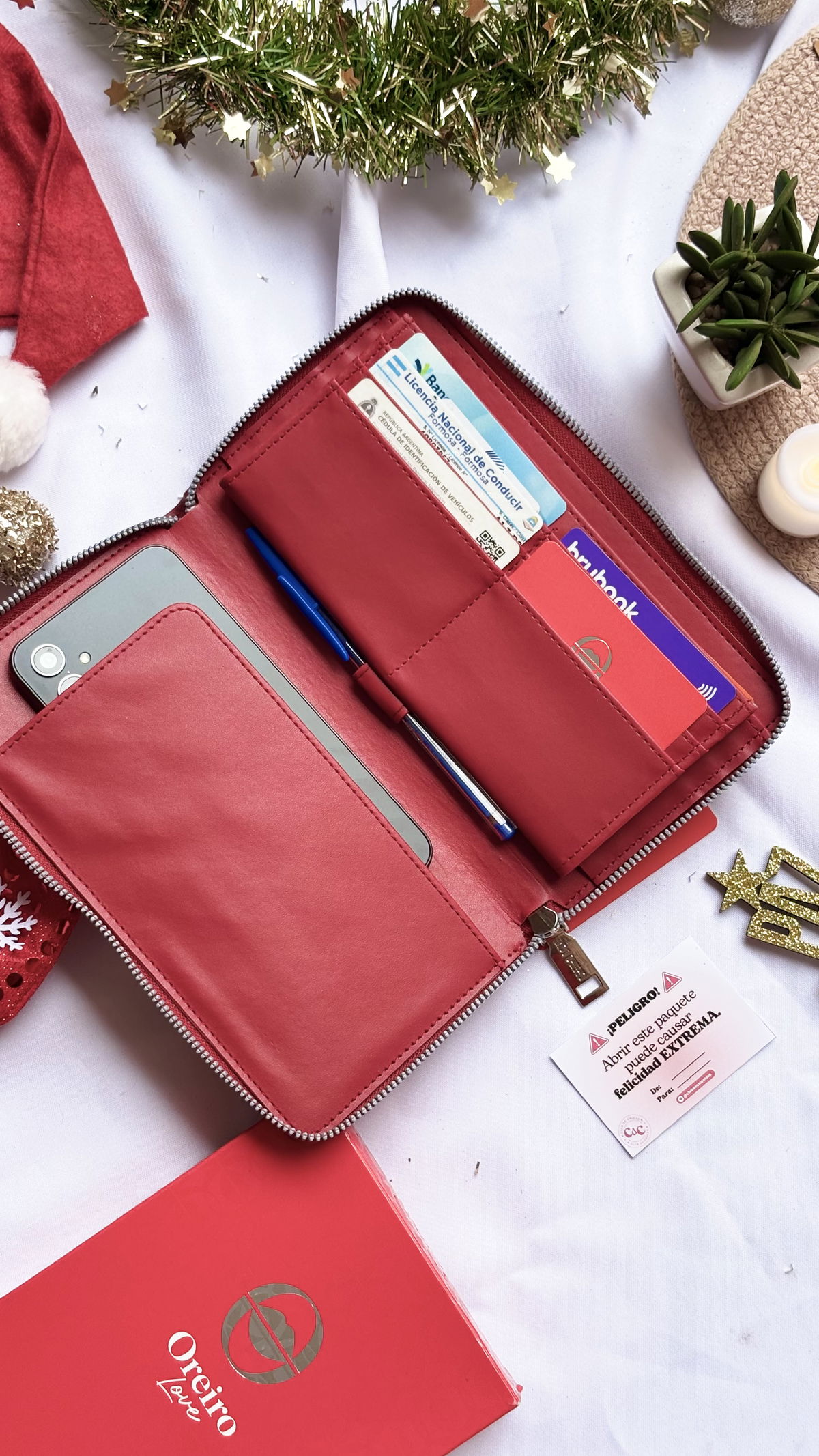 Diseñada con un interior súper funcional, cuenta con múltiples compartimientos para billetes y tarjetas, espacio para tu celular 📱 y un detalle que nos encanta: ¡portabirome incorporado! 🖊️
