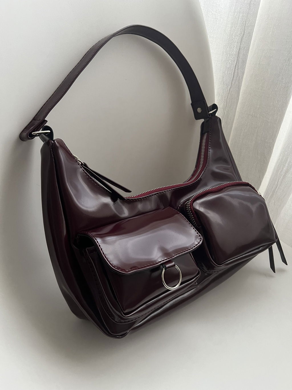 Mini bag en eco cuero charol vino 🍷
