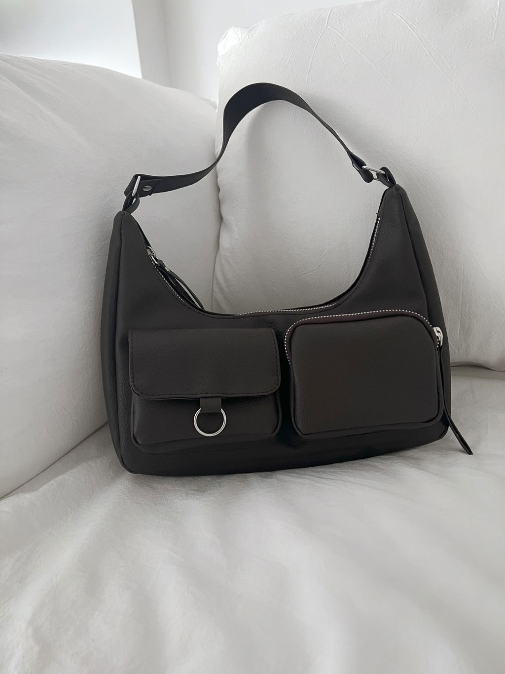 Dos bolsillos al frente, uno con cierre y otro con broche imán.