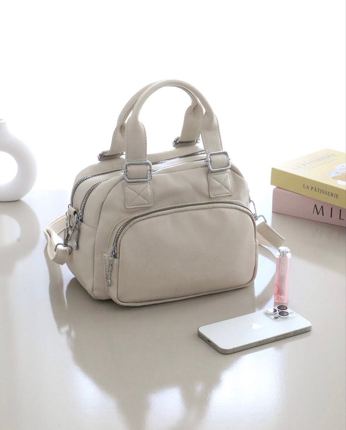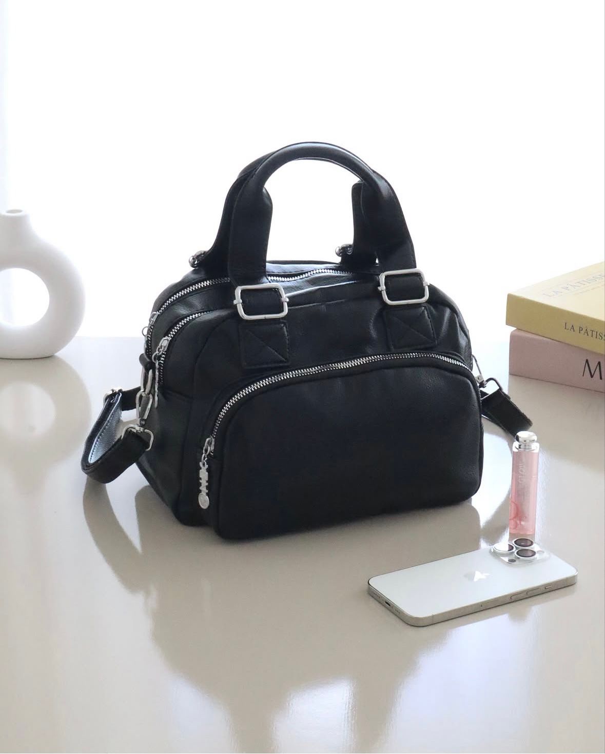 Correa regulable para usarla cruzada o al hombro, y asas de mano para un toque más clásico y elegante.